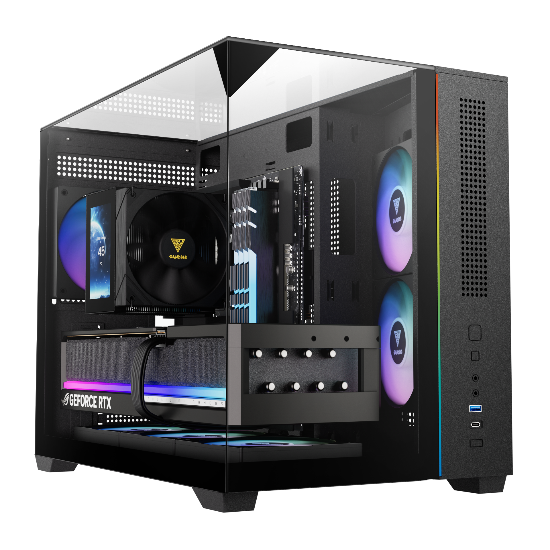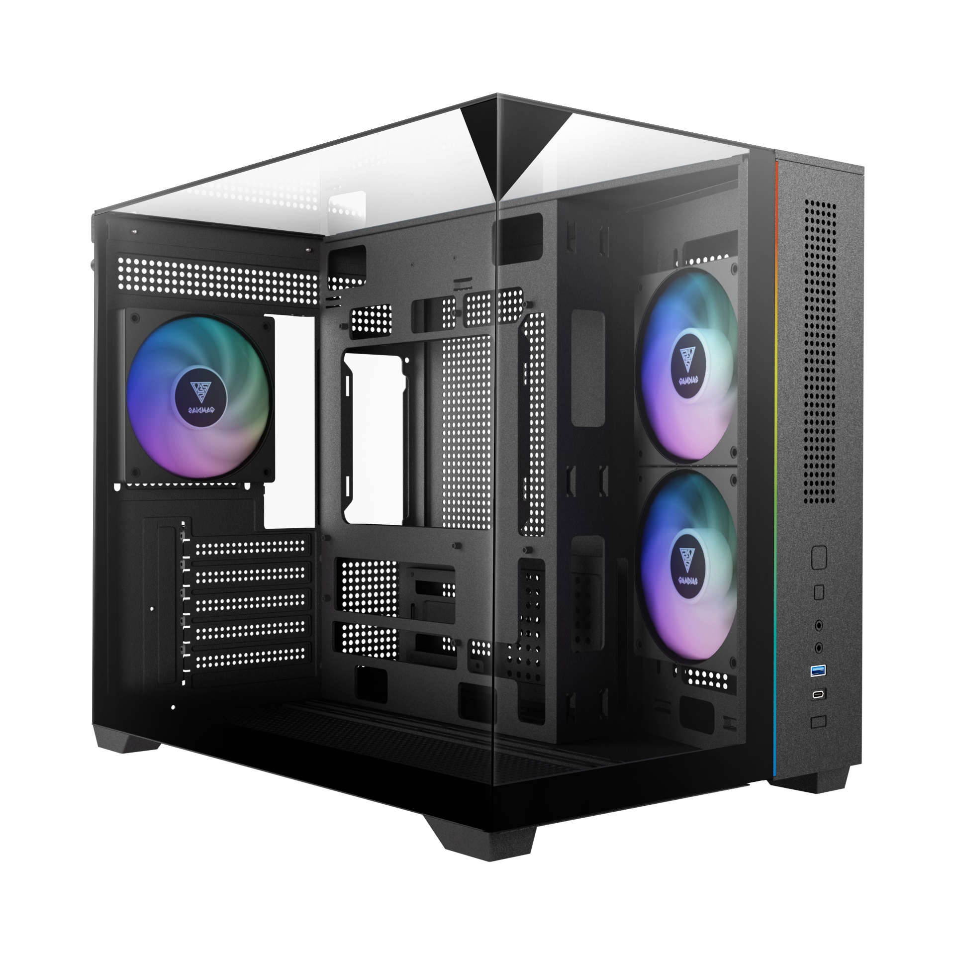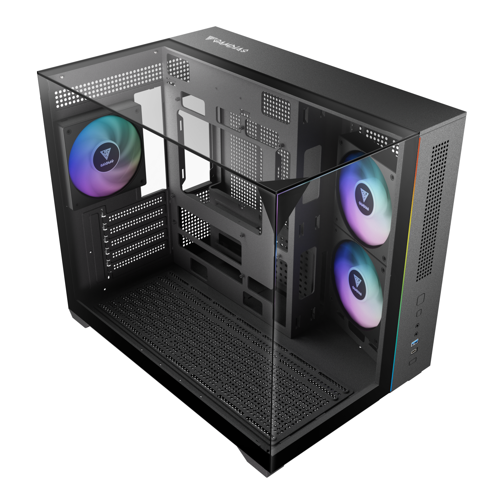 Gamdias ATLAS M3M M-ATX PC CASE Tempered Glass Computer Case with 3 ARGB Fans