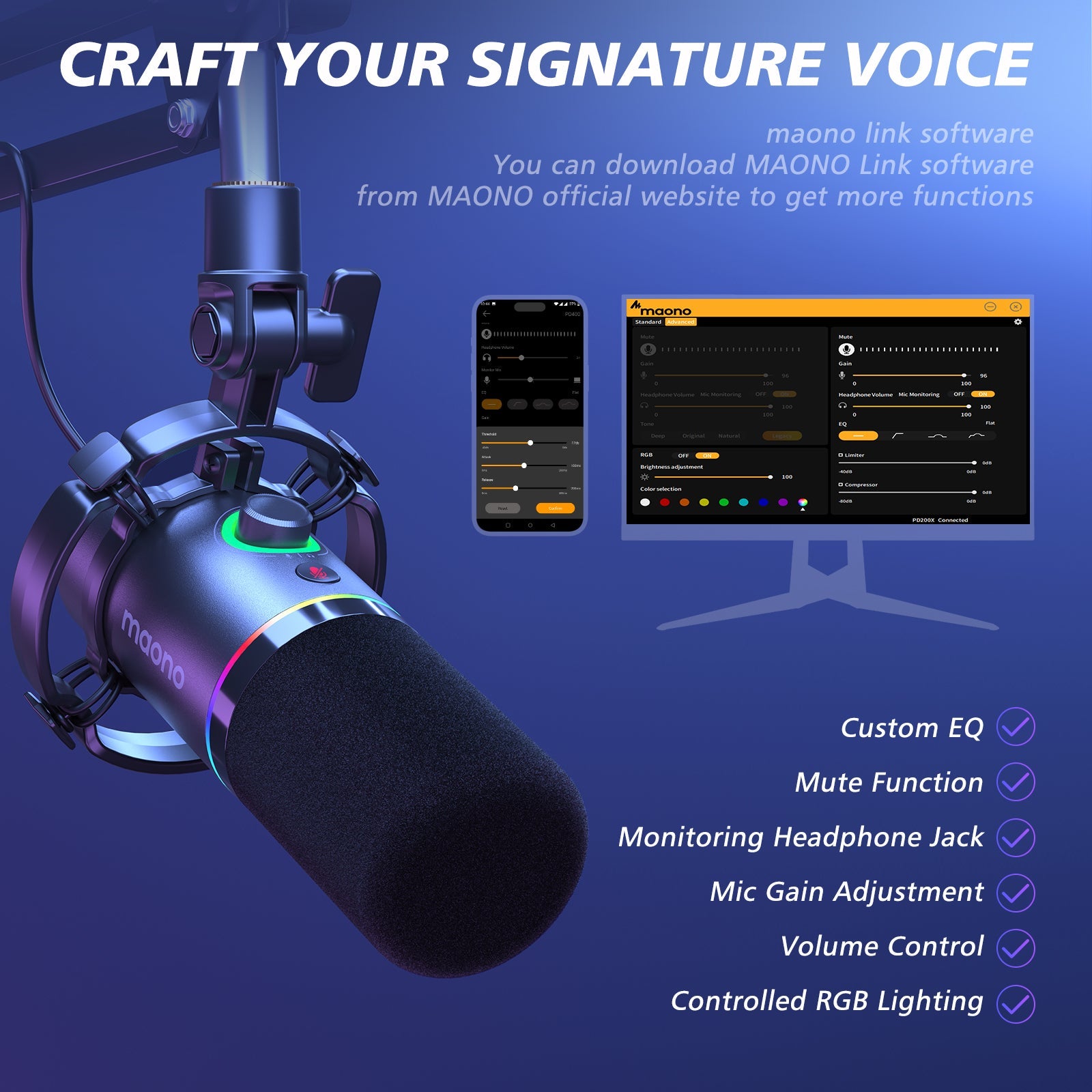 MAONO PD200XS USB/XLR Dynamic Microphone Set with Boom Arm