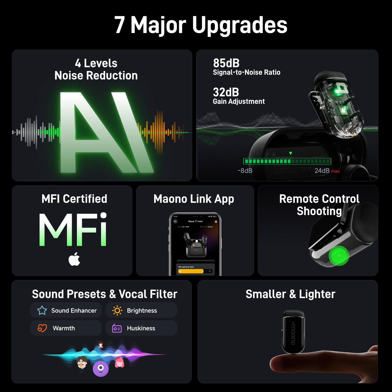 MAONO WAVE T1 MINI Wireless Microphone (2 MICS)