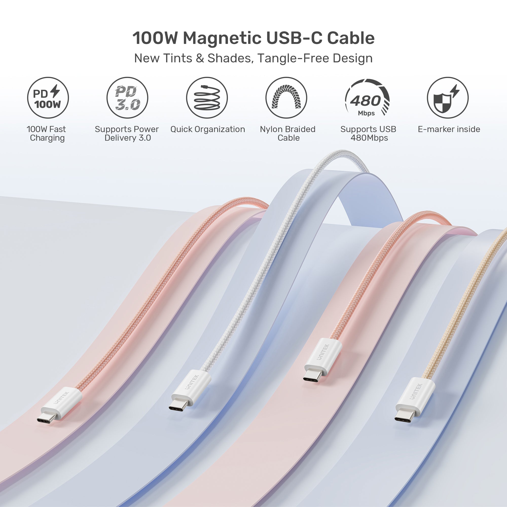 UNITEK 100W Magnetic USB-C Cable features a user-friendly design that is tangle-free and supports 100W Fast Charging.